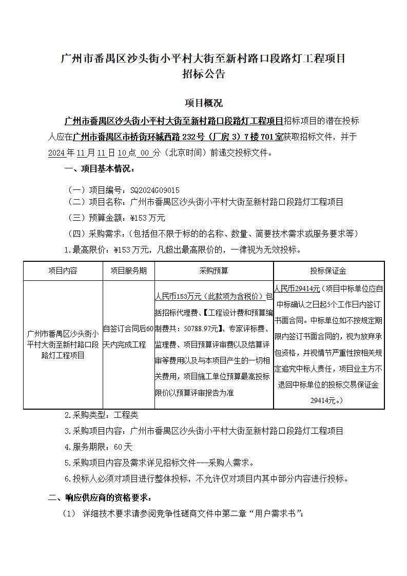 广州市番禺区沙头街小平村大街至新村路口段路灯工程项目